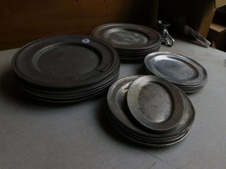 LOT 77 - Pewter - 12xPlates, 9xSaucers, Gravy Bowl