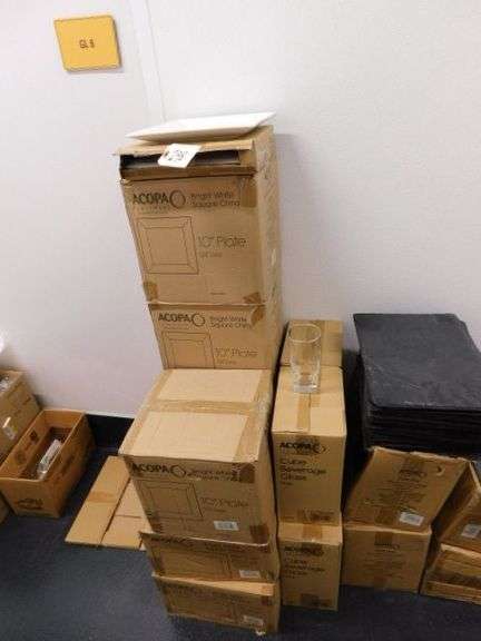 LOT 298 - Square & Rectangular Plates & (2) Cases of 14 oz. Beverage Glass ALL New!!!!